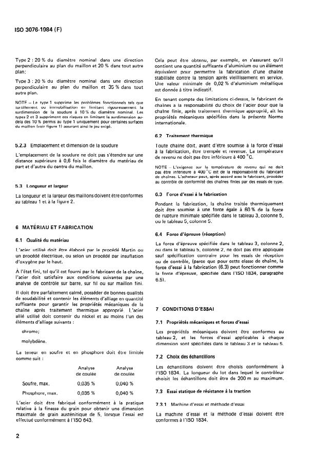 ISO 1834, Chaînes de levage à maillons courts - Conditions