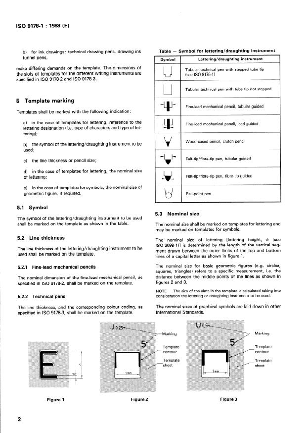 Specifies the form and structure of templates and identification marks indicating to the user the correct writing instrument(s) to be used with the template. Part 2 establishes the slot widths of templates intended for pencils, and part 3 those intended for technical pens in accordance with ISO 9175-1.
