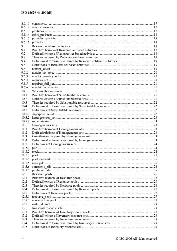 ISO 18629-44:2006 - Industrial automation systems and integration - Process specification language (PSL) - Part 44: Definitional extension: Resource extensions - defines the resource-related vocabulary and formal semantics used in the Process Specification Language (PSL) for discrete manufacturing. This part provides definitional extensions, lexicons and required theory references that enable consistent modeling and exchange of resource information (roles, capacities, pools, inventories, processor activities and paths) across automation and IT systems.