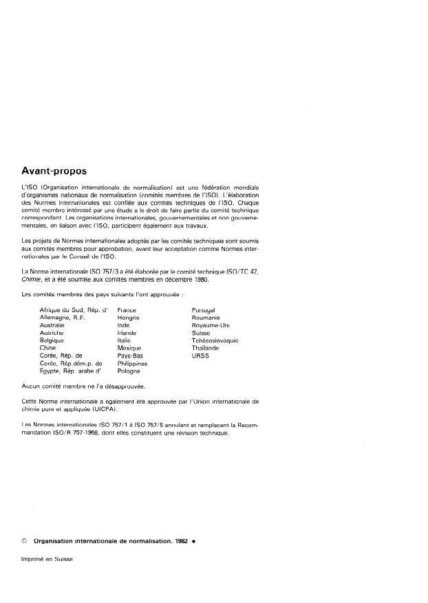 La Norme internationale ISO 757/3 a été élaborée par le comité technique ISOITC 47,