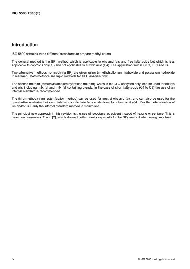 ISO 5509:2000 - Animal and vegetable fats and oils -- Preparation of methyl esters of fatty acids