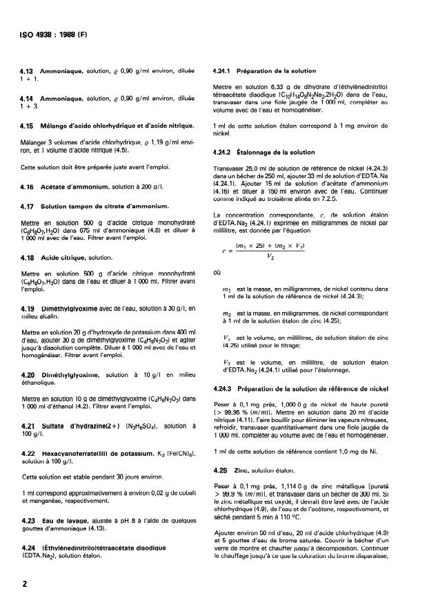 ISO 4938:1988 - Aciers et fontes -- Dosage du nickel -- Méthode gravimétrique ou titrimétrique