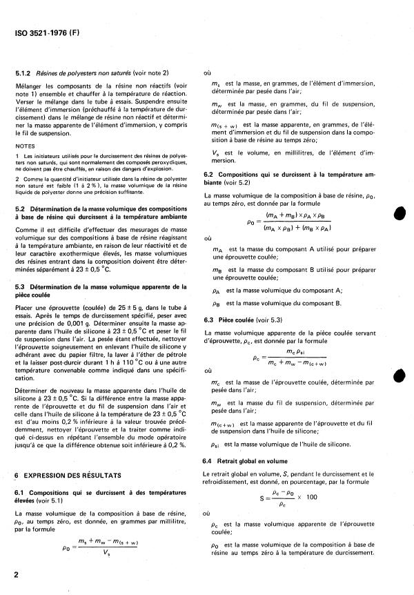 ISO 3521:1976 - Matieres plastiques -- Résines de polyesters et d'époxydes coulées -- Détermination du retrait global en volume