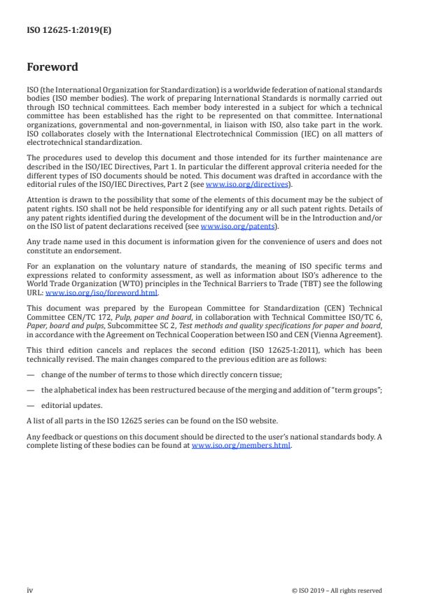 ISO 12625-1:2019 is a standard published by the International Organization for Standardization (ISO). Its full title is "Tissue paper and tissue products — Part 1: Vocabulary". This standard covers: This document establishes general principles for the use of terms in the entire working field of tissue paper and tissue products. It permits the use of a common terminology in industry and commerce. It is expressly stated that ISO 15755 applies for the detection of impurities and contraries in tissue paper and tissue products. For the determination of moisture content in tissue paper and tissue products, ISO 287 applies.