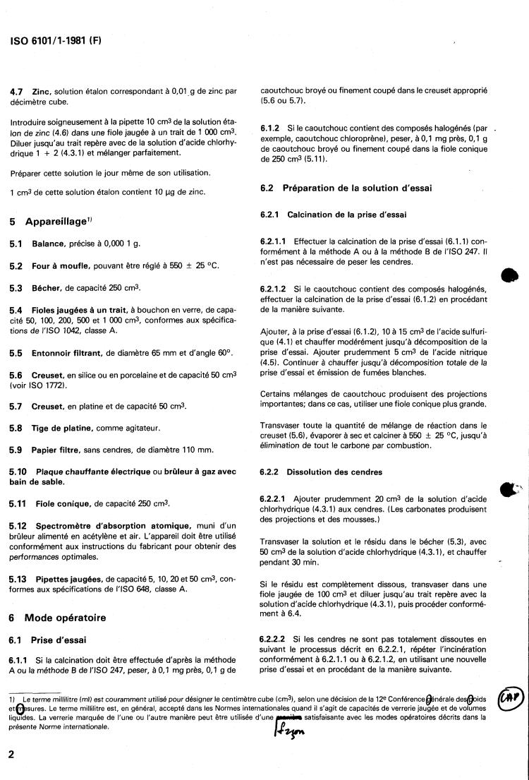 Descriptors : rubber industry, rubber, tests, determination of content, zinc, atomic absorption spectrometry.