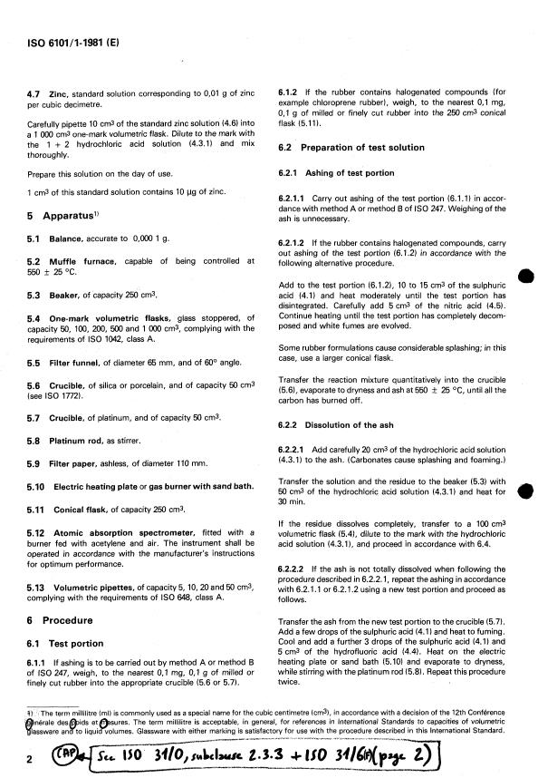 ISO 6101-1:1981 - Rubber — Determination of metal content — Flame atomic absorption spectrometric method — Part 1: Determination of zinc content Released:12/1/1981