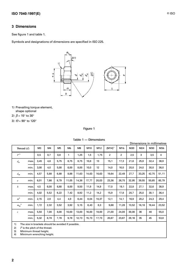 NOTE — The dimensions of the nuts correspond to those given in ISO 4032 plus prevailing torque feature.