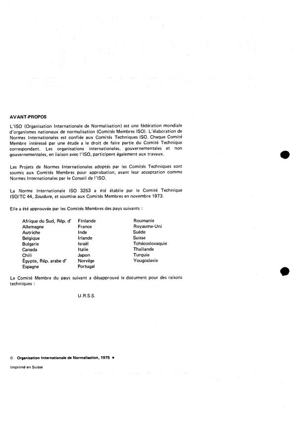 CDU 621.791 : 621.643.4 Réf. no : IS0 3253-1975 (FI