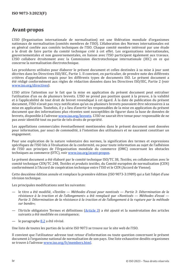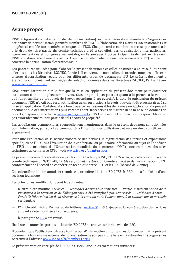 ISO 9073-3:2023 - Nontissés — Méthodes d’essai — Partie 3: Détermination de la résistance a la traction et de l’allongement a la rupture par la méthode sur bande Released:12. 06. 2023