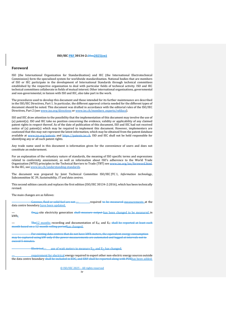 REDLINE ISO/IEC PRF 30134-2 - Information technology — Data centres key performance indicators — Part 2: Power usage effectiveness (PUE) Released:3. 11. 2025