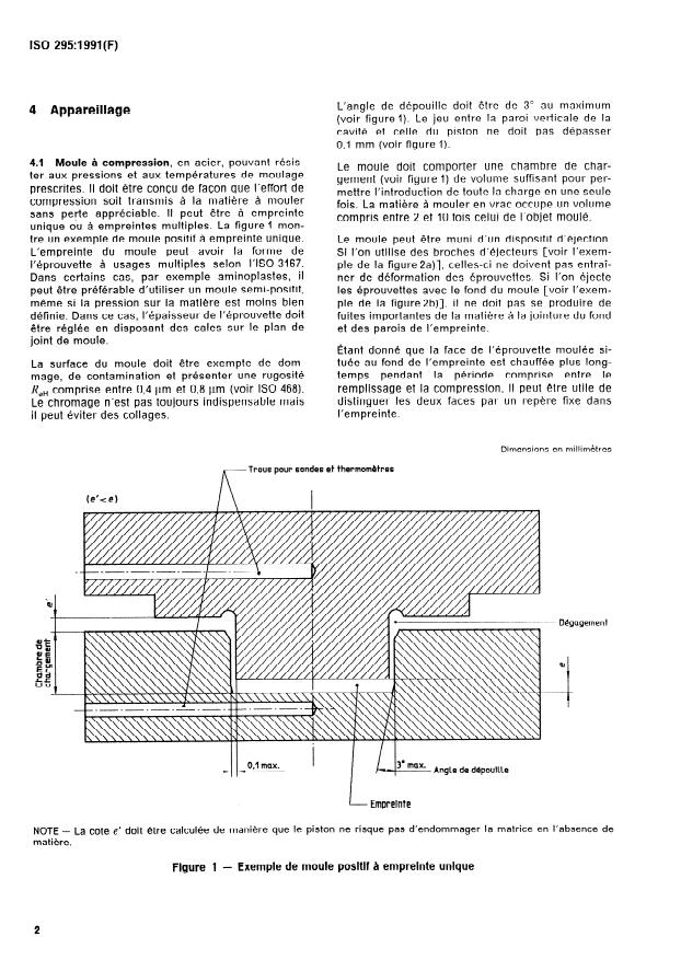 ISO 295:1991 - Plastiques -- Moulage par compression des éprouvettes en matieres thermodurcissables
