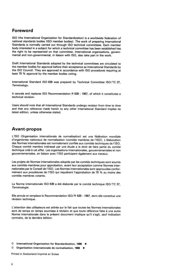 ISO 639:1988 is a standard published by the International Organization for Standardization (ISO). Its full title is "Code for the representation of names of languages". This standard covers: Gives a two-letter lower-case code. The symbols were devised primarily for use in terminology, lexicography and linguistic, but they may be used for any application. It also includes guidance on the use of language symbols in some of these applications. The annex includes a classified list of languages and their symbols arranged by families.