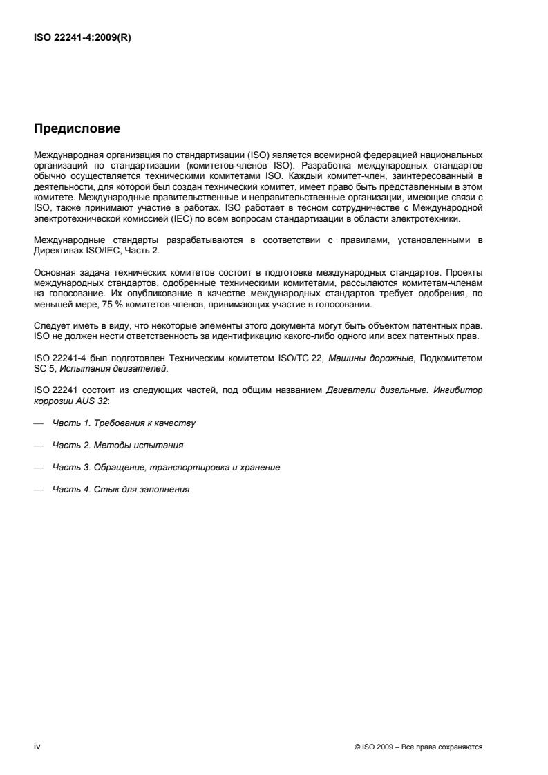 ISO 22241-1, Двигатели дизельные. Ингибитор коррозии AUS 32. Часть 1. Требования к качеству