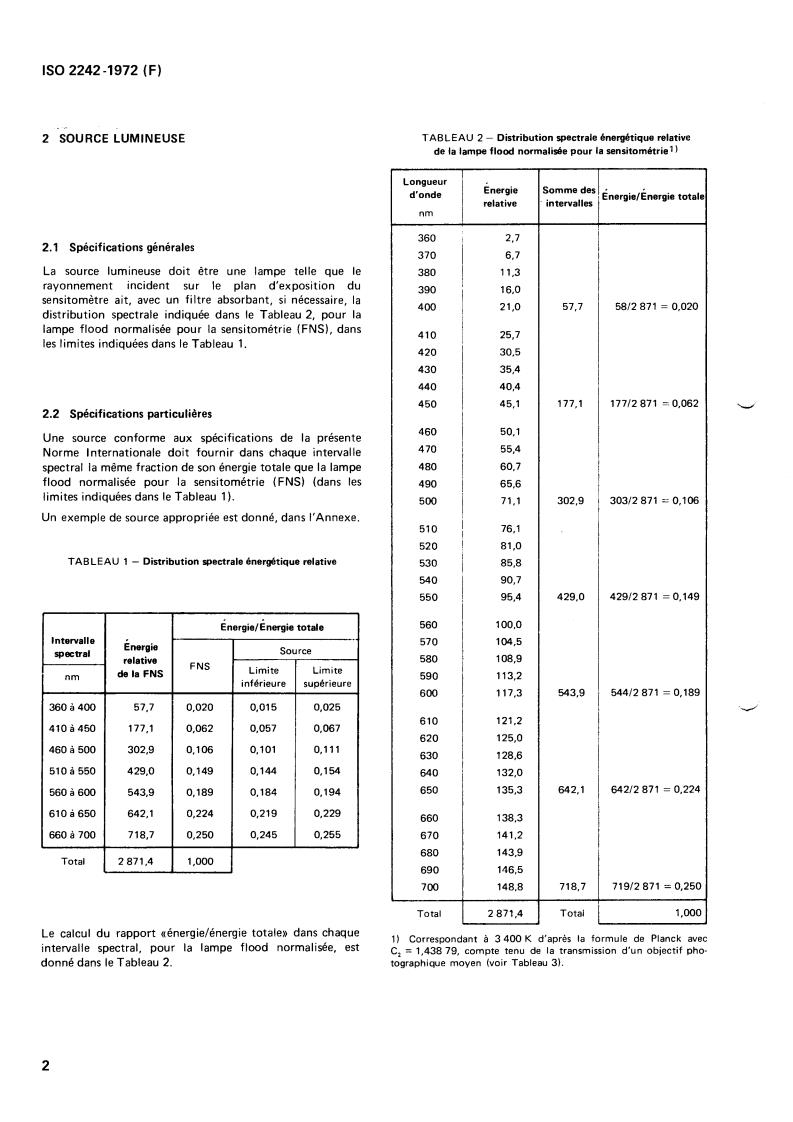 ISO 2242:1972 - Photography — Light sources for use in sensitometric exposure — Simulation of the spectral distribution of photoflood illumination Released:10/1/1972