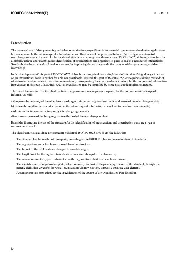 This edition, together with ISO/IEC 6523-2:1998, cancels and replaces ISO 6523:1984, which has been technically revised.
