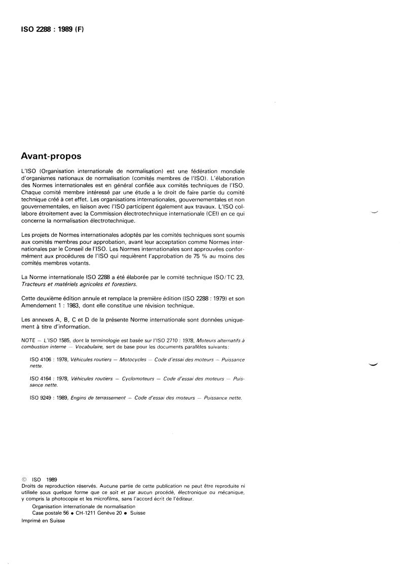 ISO 2288:1989 - Agricultural tractors and machines — Engine test code (bench test) — Net power Released:12/7/1989
