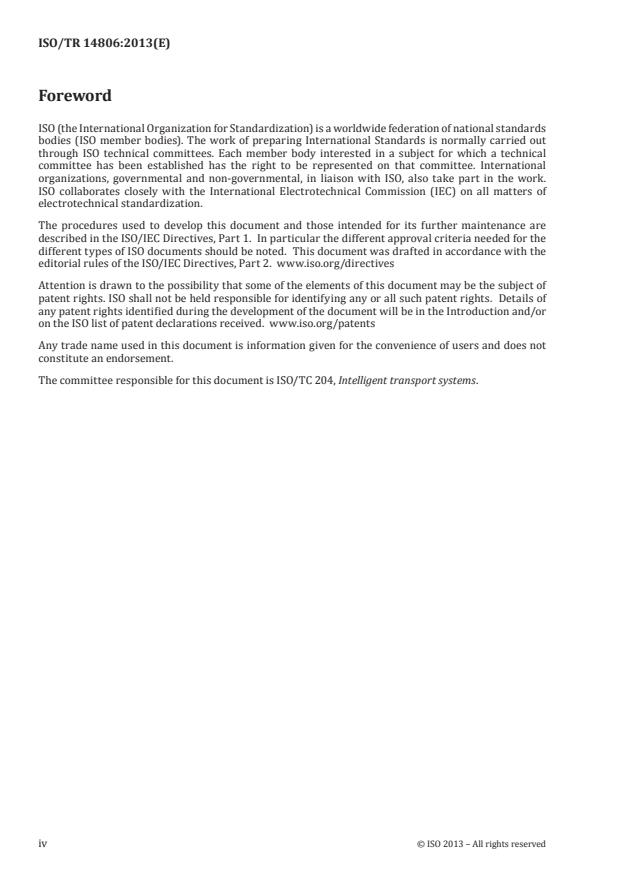 ISO/TR 14806:2013 is classified under the following ICS (International Classification for Standards) categories: 03.220.01 - Transport in general; 35.240.60 - IT applications in transport. The ICS classification helps identify the subject area and facilitates finding related standards.