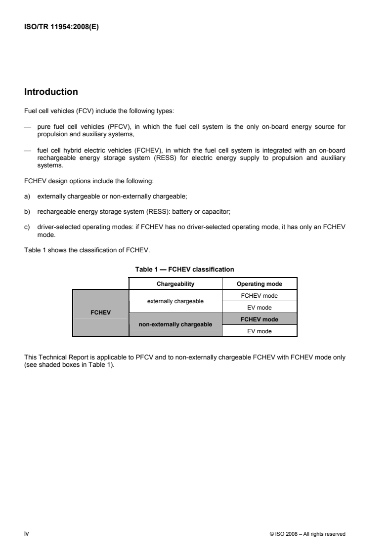 This Technical Report is applicable to PFCV and to non-externally chargeable FCHEV with FCHEV mode only