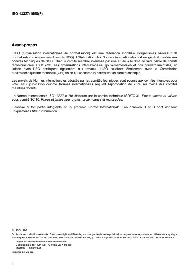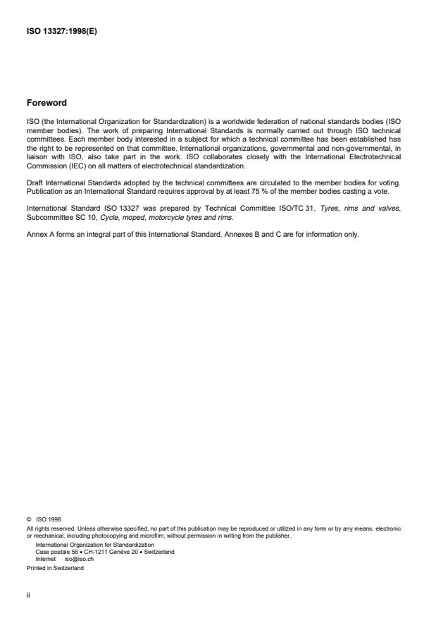 International Standard ISO 13327 was prepared by Technical Committee ISO/TC 31, Tyres, rims and valves,