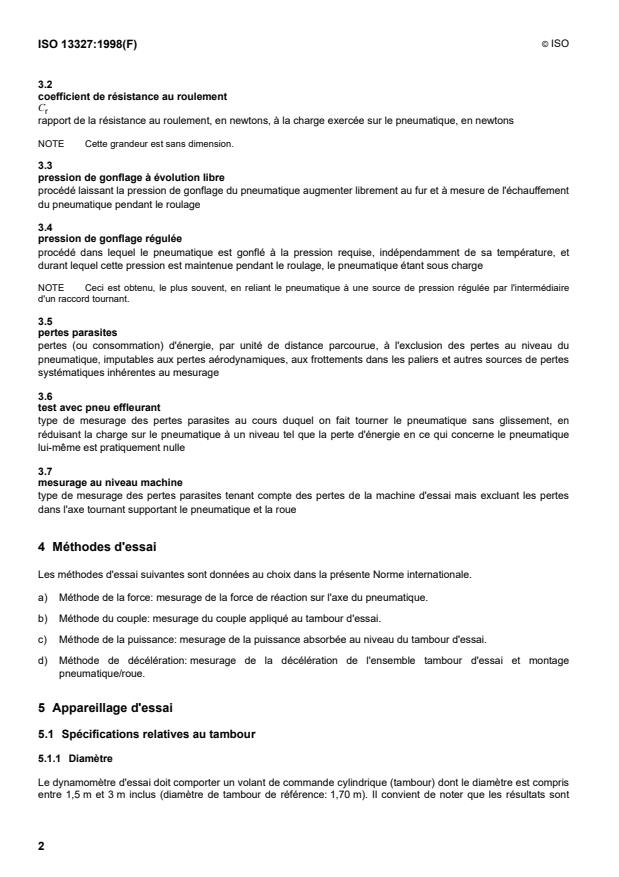 ISO 13327:1998 - Pneumatiques pour motocycles -- Méthode de mesure de la résistance au roulement