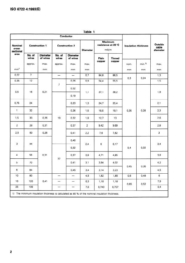 - Part 4: Conductor sizes and dimensions for thin-wall insulated cables