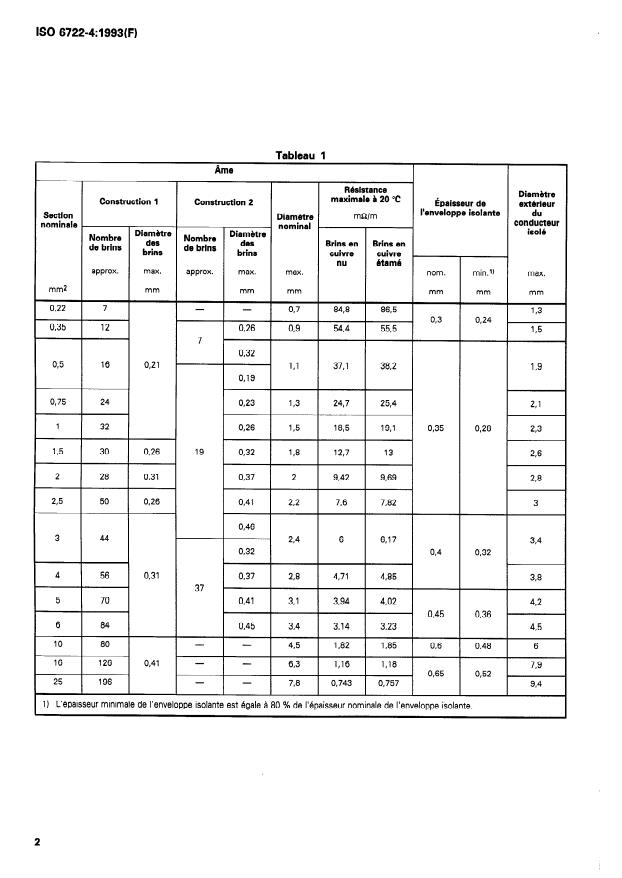 - Partie 4: Sections et dimensions des conducteurs à enveloppe iso-