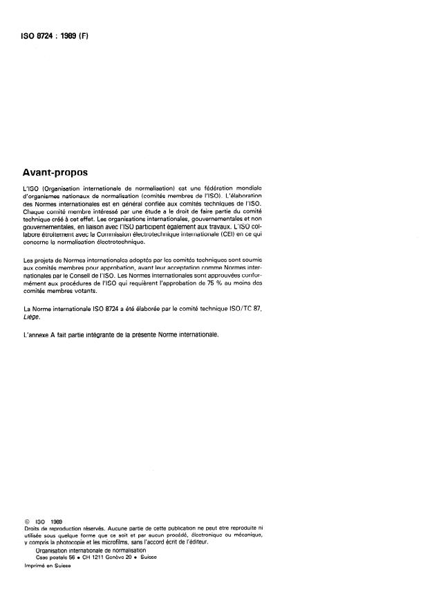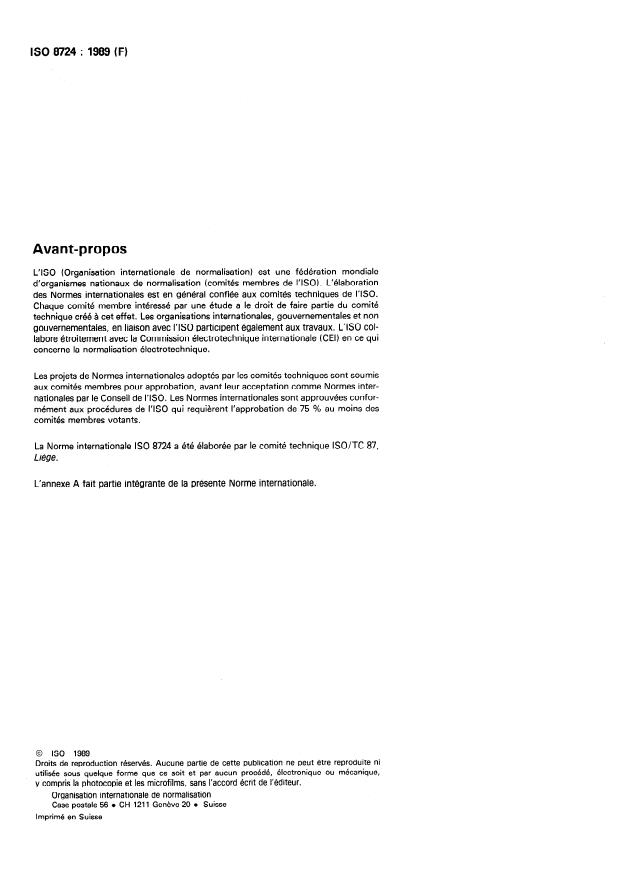 La Norme internationale ISO 8724 a été élaborée par le comité technique ISO/TC 87,