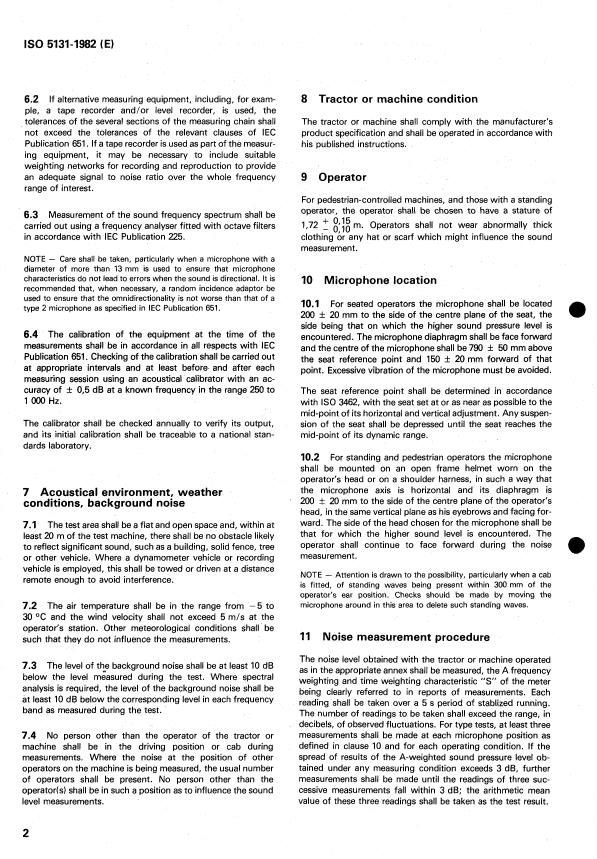 ISO 5131:1982 is a standard published by the International Organization for Standardization (ISO). Its full title is "Acoustics — Tractors and machinery for agriculture and forestry — Measurement of noise at the operator's position — Survey method". This standard covers: Acoustics — Tractors and machinery for agriculture and forestry — Measurement of noise at the operator's position — Survey method