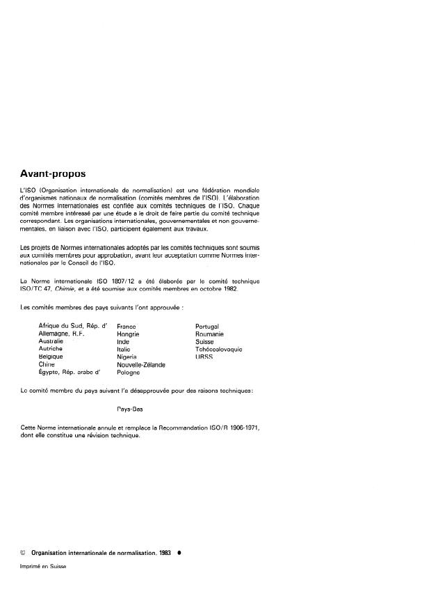 Cette Norme internationale annule et remplace la Recommandation ISO/R 1906-1971,