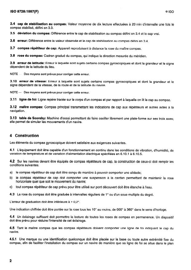 La construction d’un compas gyroscopique doit répondre aux exigences spécifiées dans l’article 4.