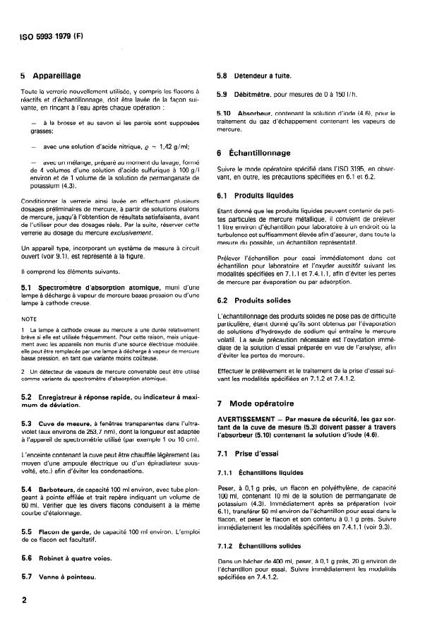 2 Un détecteur de vapeurs de mercure convenable peut être utilisé Effectuer le prélèvement et le traitement de la prise d’essai sui-