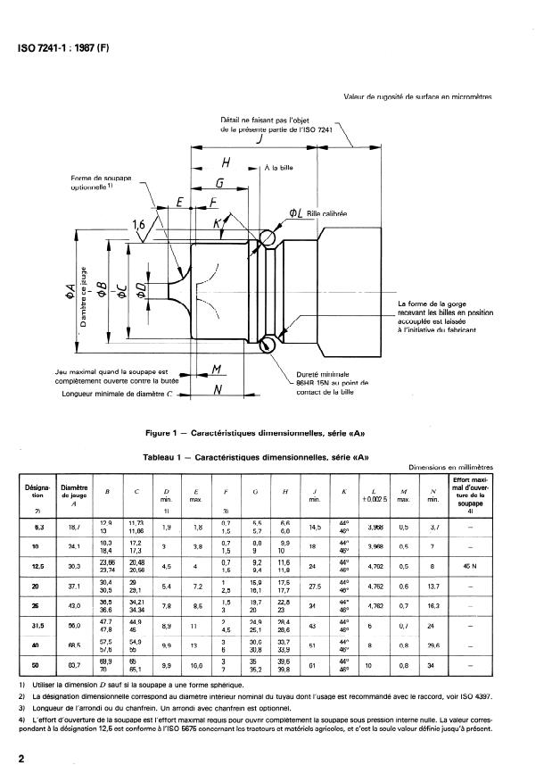 ISO 7241-2, Transmissions hydrauliques - Raccords rapides -