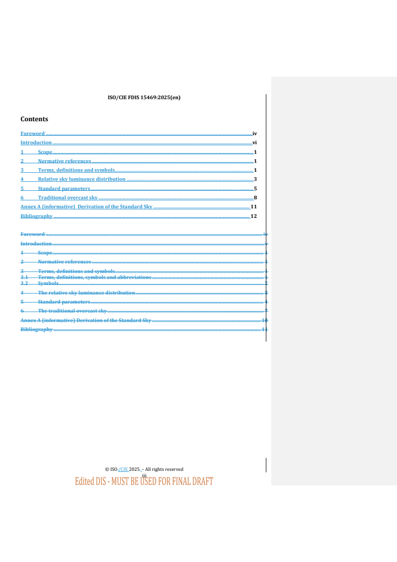 REDLINE ISO/CIE FDIS 15469 - Spatial distribution of daylight — CIE standard general sky Released:9/22/2025