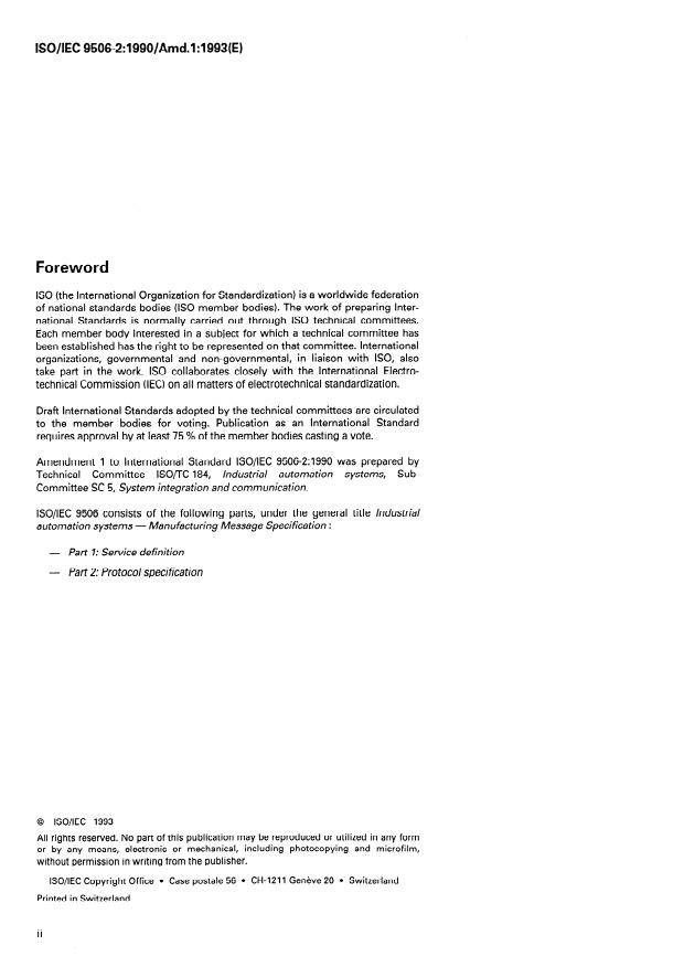 Amendment 1 to international Standard iSO/IEC 9506-2:1990 was prepared by