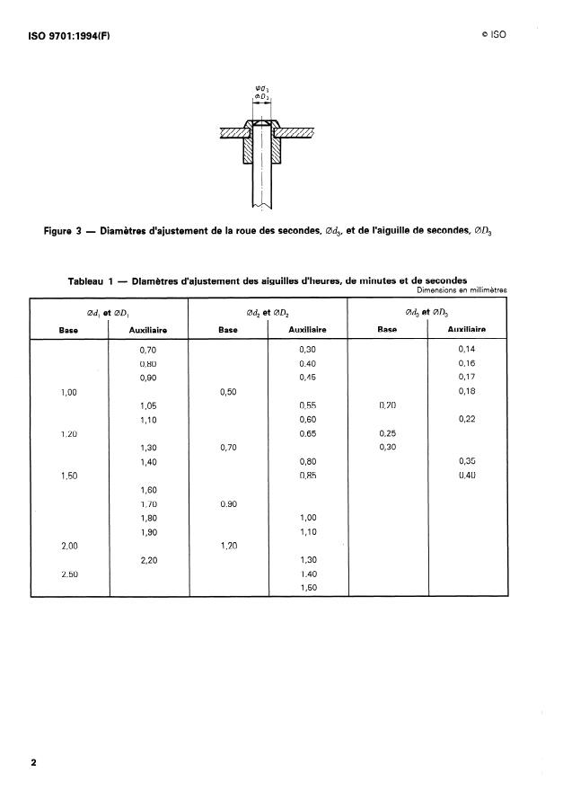 ISO 9701:1994 - Montres-bracelets et montres de poche -- Diametres d'ajustement des aiguilles d'heures, de minutes et de secondes