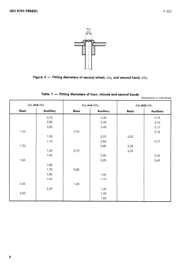 ISO 9701:1994 - Wrist and pocket watches -- Fitting diameters for hour, minute and second hands