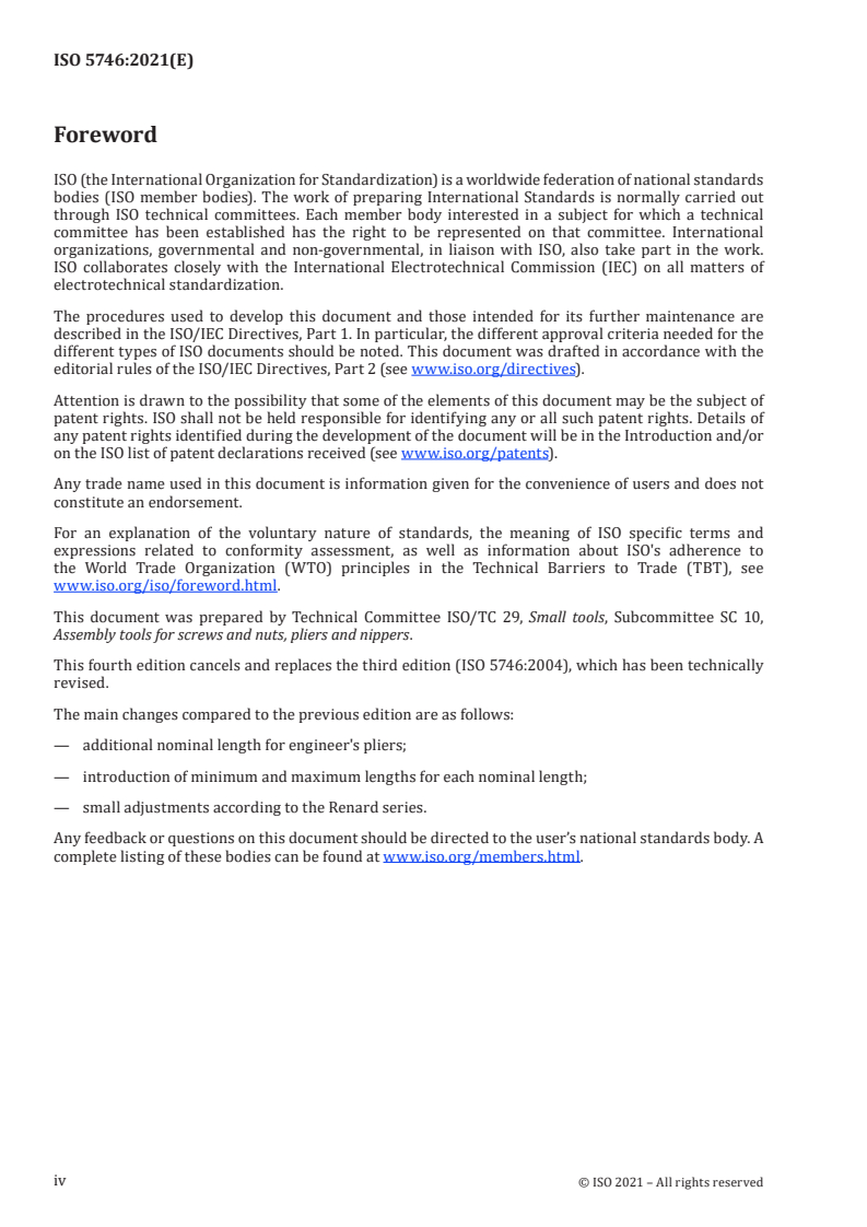Keywords: ISO 5746:2021, pliers dimensions, Lineman's pliers, engineer's pliers, test values, pliers testing, ISO 5744, ISO 5743, cutting force, torsion test, flexion test, tool standards.