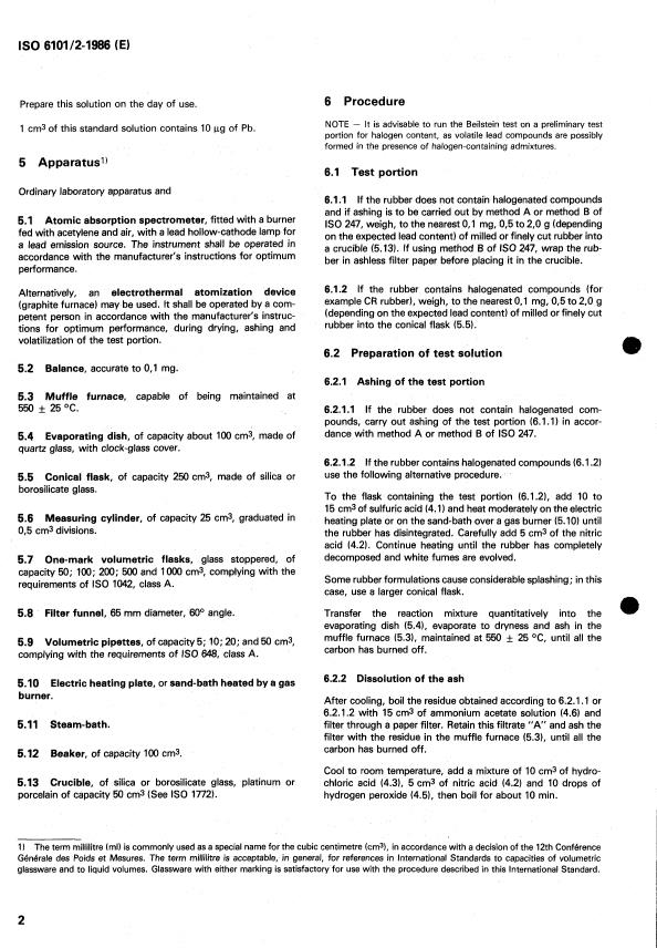 ISO 6101-2:1986 - Rubber — Determination of metal content — Flame atomic absorption spectrometric method — Part 2: Determination of lead content Released:10/30/1986