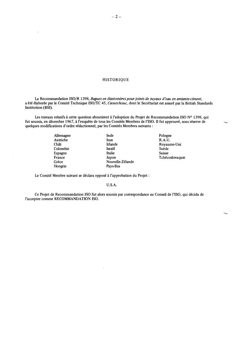 Les travaux relatifs à cette question aboutirent à l’adoption du Projet de Recommandation IS0 No 1398, qui
