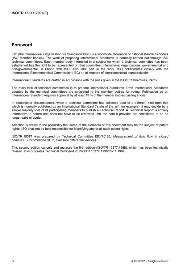ISO/TR 15377:2007 is a technical report published by the International Organization for Standardization (ISO). Its full title is "Measurement of fluid flow by means of pressure-differential devices — Guidelines for the specification of orifice plates, nozzles and Venturi tubes beyond the scope of ISO 5167". This standard covers: ISO/TR 15377:2007 describes the geometry and method of use for conical-entrance orifice plates, quarter-circle orifice plates, eccentric orifice plates and Venturi tubes with 10,5 degree convergent angles. Recommendations are also given for square-edged orifice plates and nozzles under conditions outside the scope of ISO 5167.