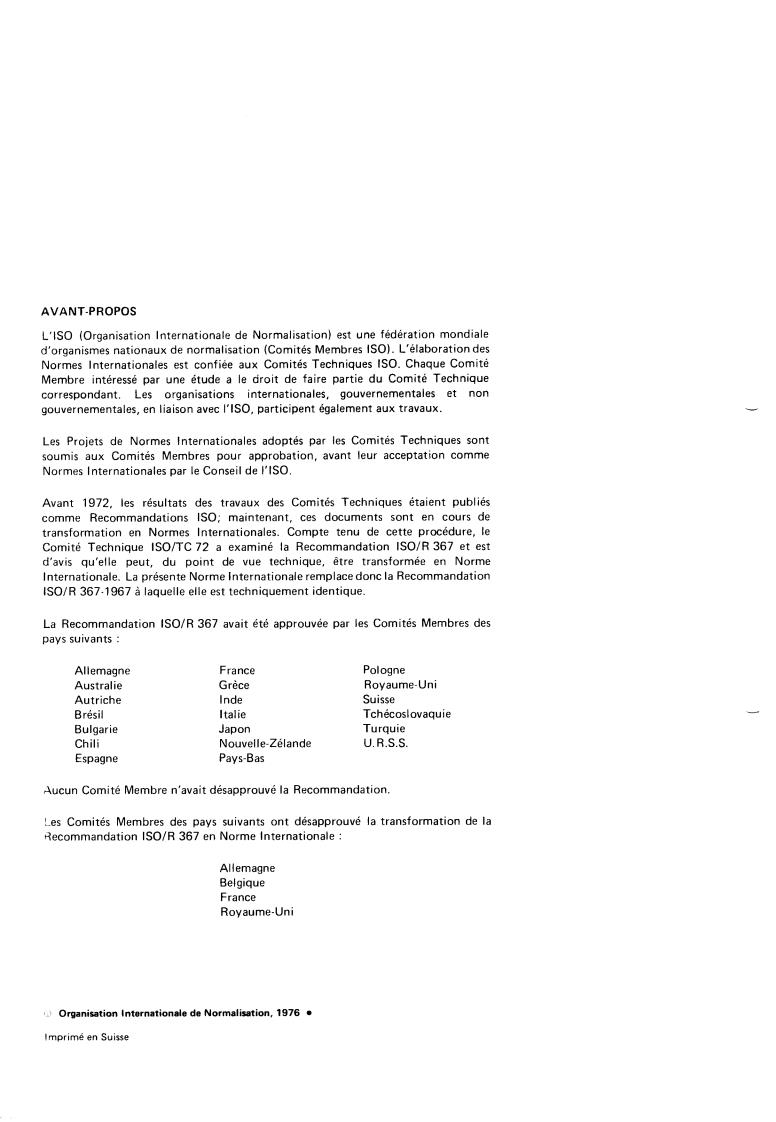 Comité Technique ISO/TC 72 a examiné la Recommandation ISO/R 367 et est