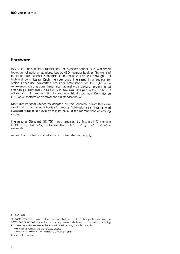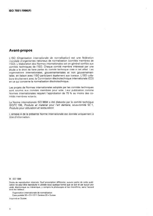 ISO 7551:1996 is classified under the following ICS (International Classification for Standards) categories: 11.060.10 - Dental materials. The ICS classification helps identify the subject area and facilitates finding related standards.