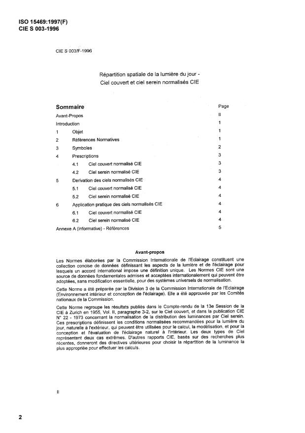 ISO 15469:1997 - Répartition spatiale de la lumiere du jour -- Ciel couvert et ciel serein normalisés CIE