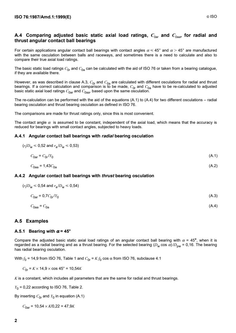 ISO 76:1987/Amd 1:1999 - Rolling bearings — Static load ratings — Amendment 1: Annex A (informative) — Discontinuities in the calculation of basic static load ratings Released:11/4/1999