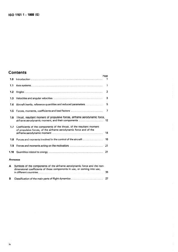 ISO 1151-1:1988 - "Flight dynamics - Concepts, quantities and symbols - Part 1: Aircraft motion relative to the air" is an international standard that establishes basic definitions, symbols and conventions for describing an aircraft’s motion with respect to the atmosphere. It assumes the atmosphere is at rest or in translational motion at constant velocity relative to Earth and treats the aircraft as rigid (many definitions are applicable to flexible airframes). The document provides a consistent vocabulary and notation set for flight dynamics, aerodynamics and stability work.
