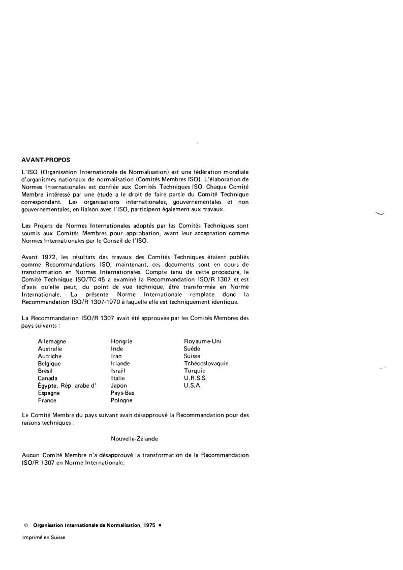La Recommandation ISO/R 1307 avait été approuvée par les Comités Membres des