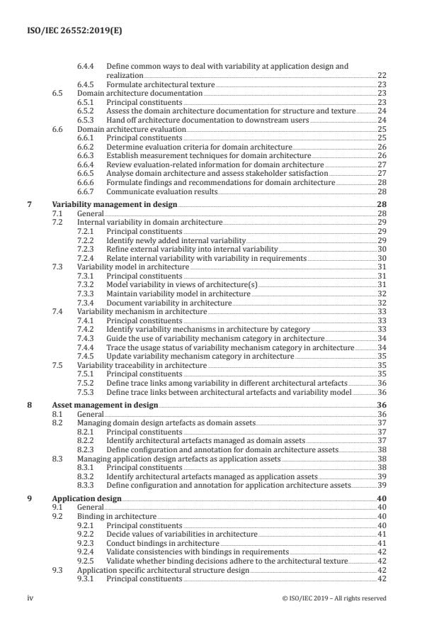 Keywords: ISO/IEC 26552:2019, product line architecture, variability management, domain architecture, application design, asset management, architecture management, tools and methods.