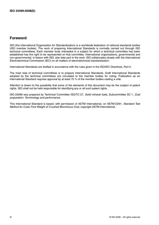 ISO 23499 was prepared by Technical Committee ISO/TC 27, Solid mineral fuels, Subcommittee SC 1, Coal