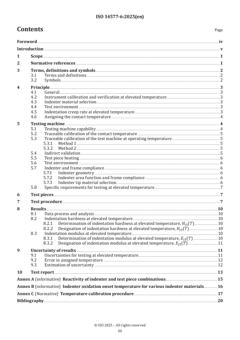 - Annexes in ISO 14577-6 provide further guidance on indenter reactivity, oxidation onset temperatures, and temperature calibration procedures.