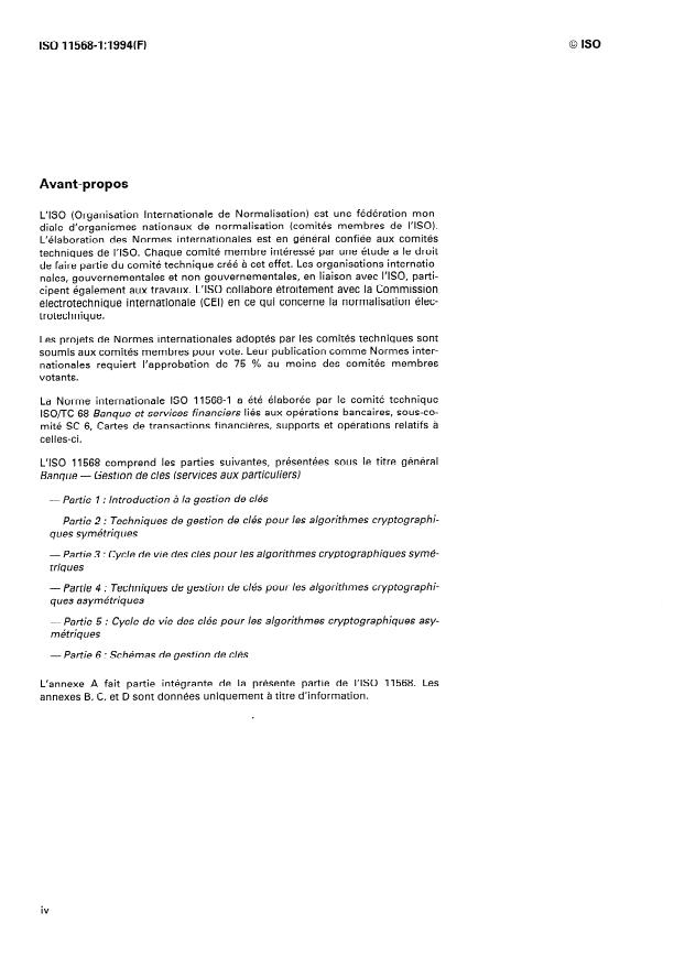 ISO 11568-1:1994 - Banque -- Gestion de clés (services aux particuliers)